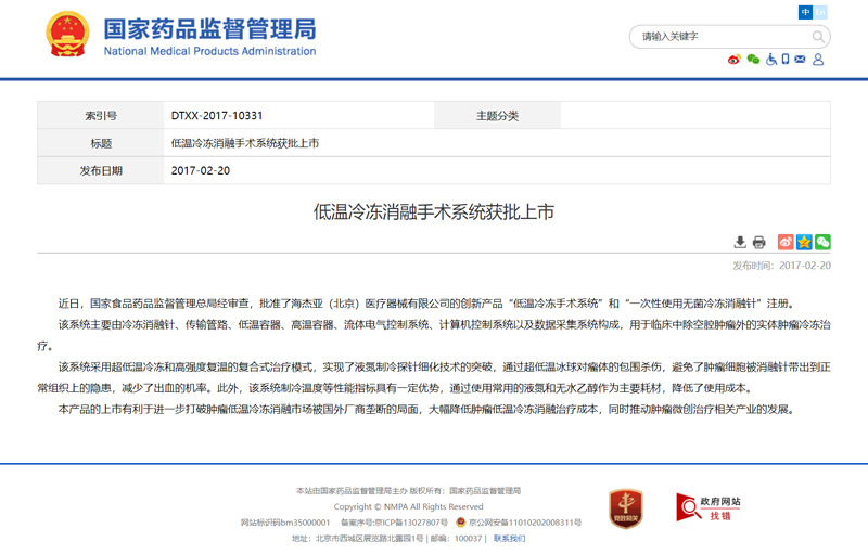 2023年9月,海杰亚推出了北京市第一台微波消融设备,在国内外行业展会中获得了行业专家们的广泛关注,并于2024年1月通过了美国FDA认证登陆美国市场。